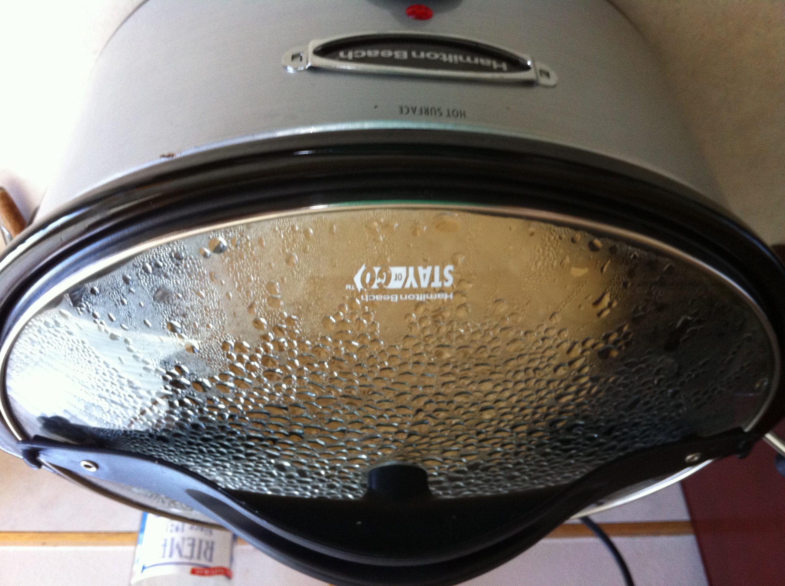 See the little lids sitting in the water beneath my bready casserole dish? Yep. That's how it works. Again, don't take the lid off mid-cook. Bad chef!